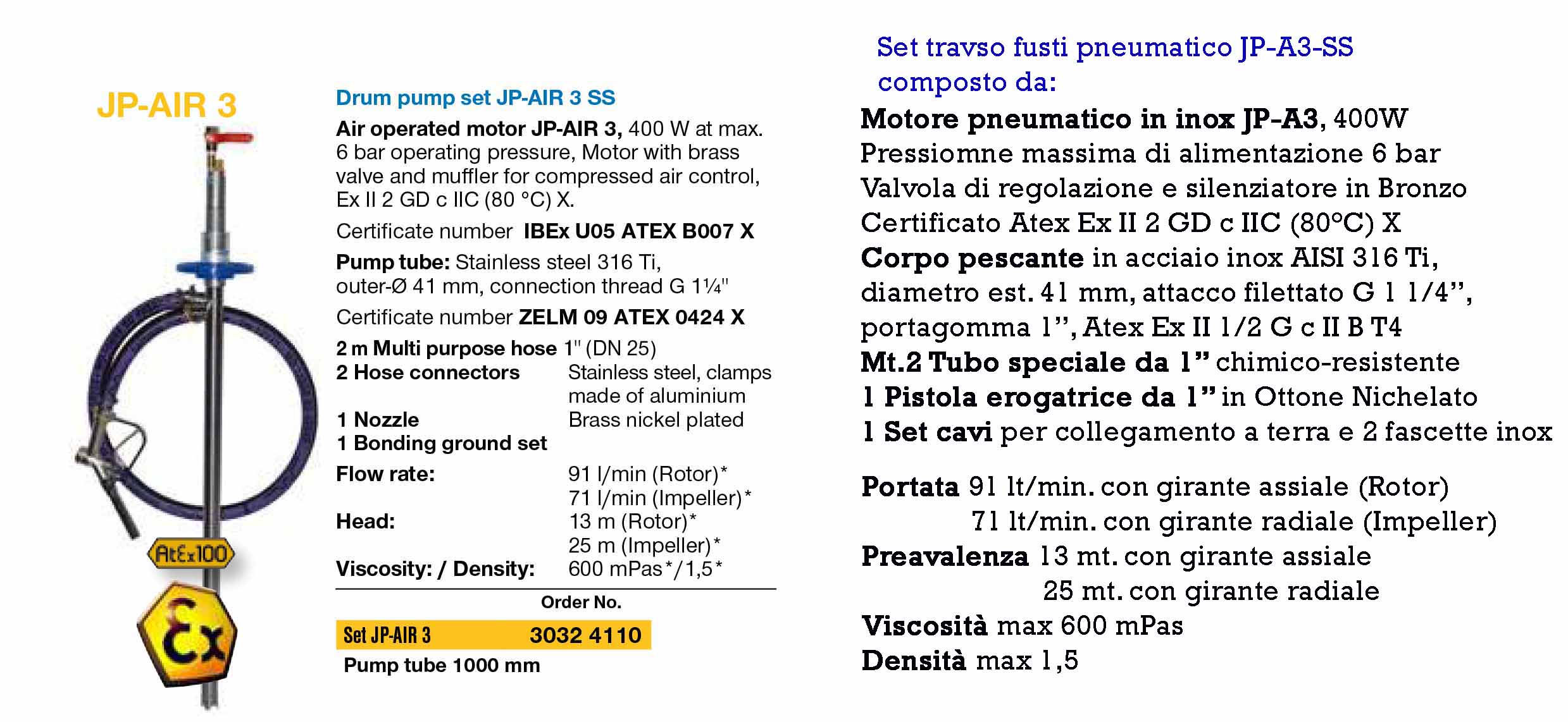 Il set JP-AIR è particolarmente adatto per applicazioni dove è richiesta la massima sicurezza o in presenza di liquidi pericolosi che non devono essere gestiti con dispositivi elettrici. È la scelta preferita anche da chi lavora in ambienti senza accesso alla rete elettrica, e per tutte quelle situazioni che richiedono una pompa leggera, affidabile e facilmente manutenibile.